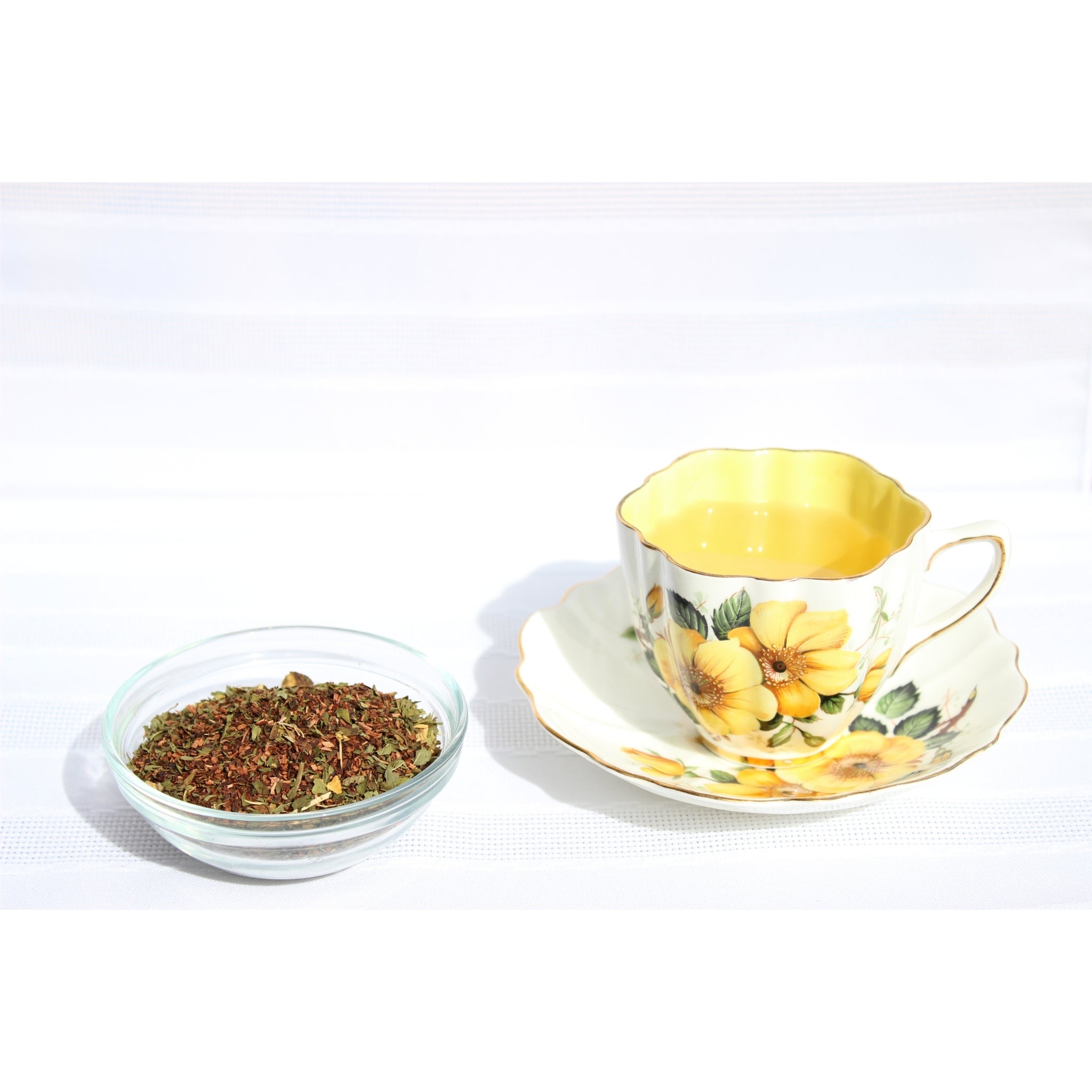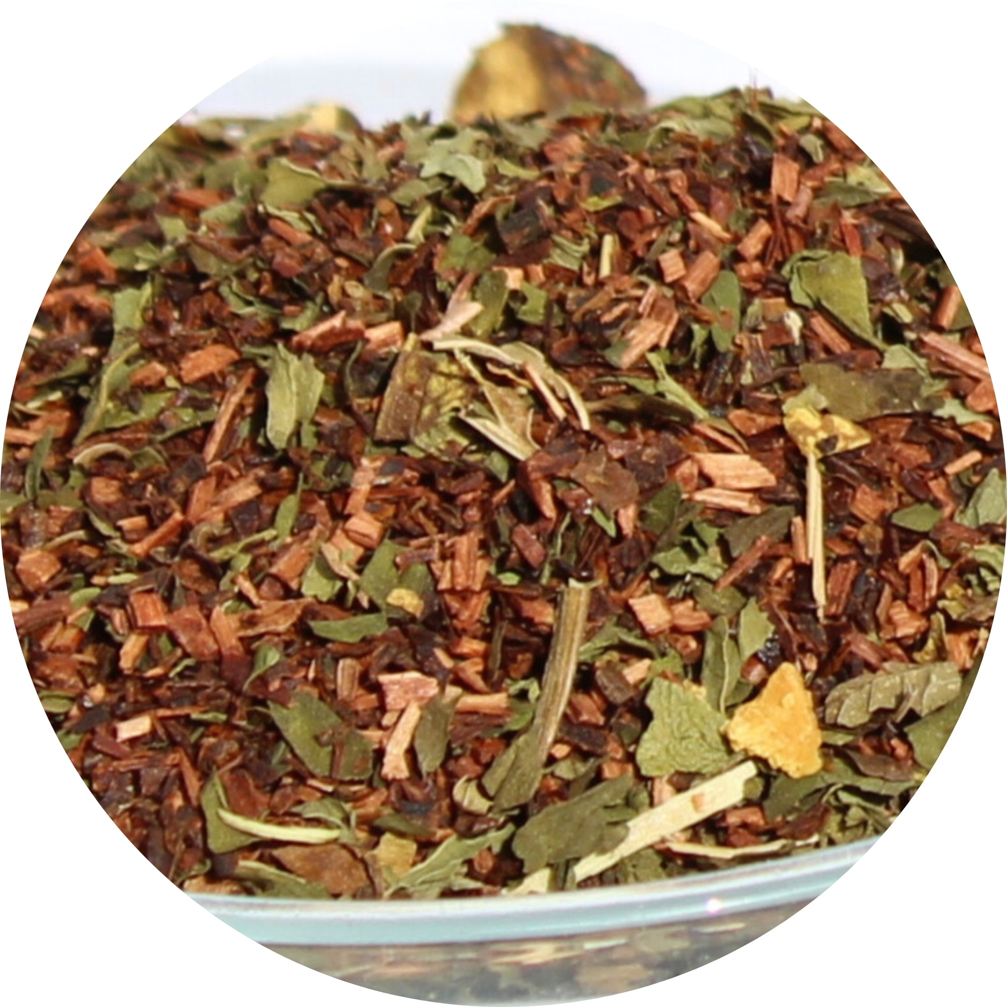 Ingredients: Honeybush Tea, Licorice Root, Peppermint and Spearmint Leaves, Rosehips, Flavorings