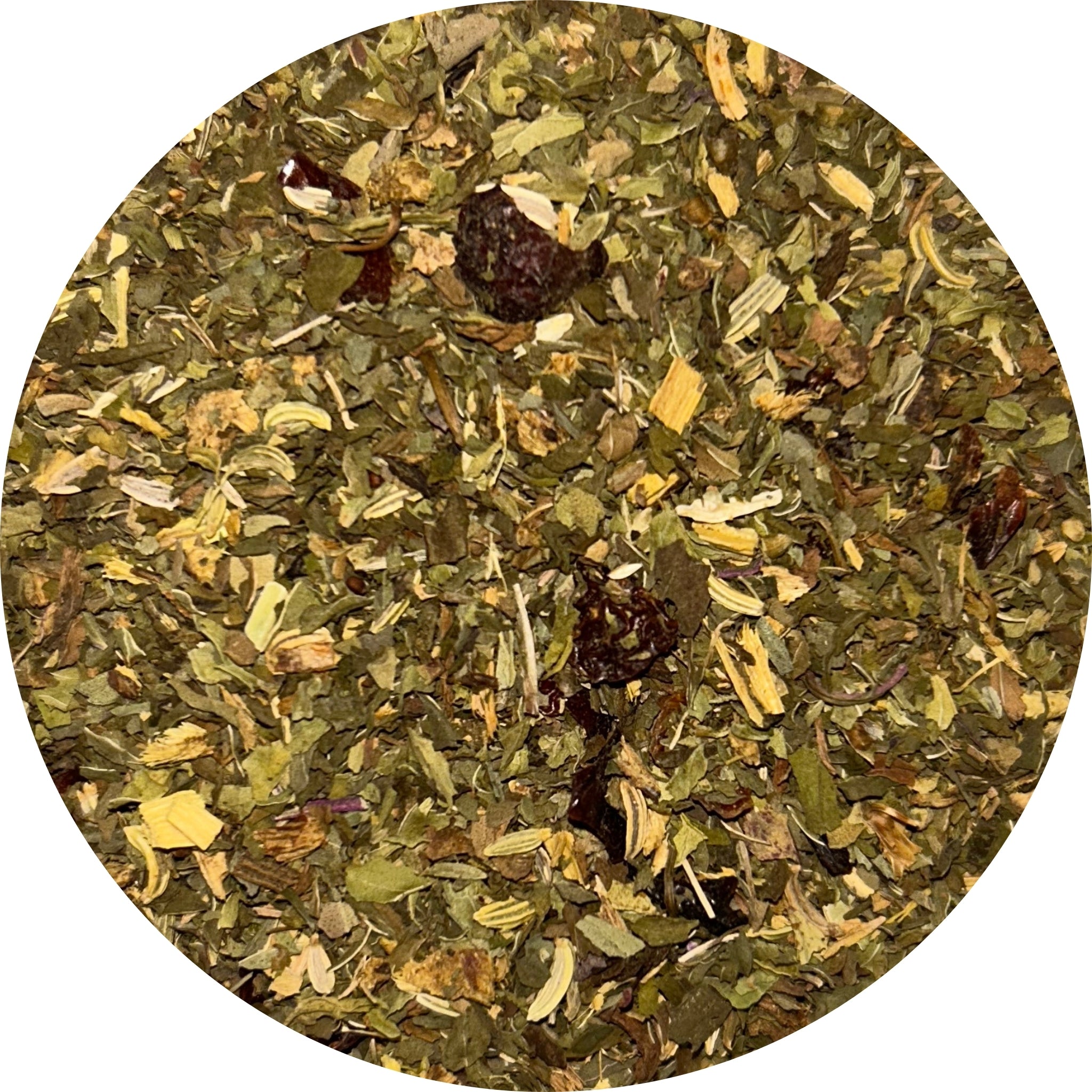 Ingredients: Licorice Root, Peppermint Leaves, Spearmint Leaves, Fennel Seed, Basil, Rosehips